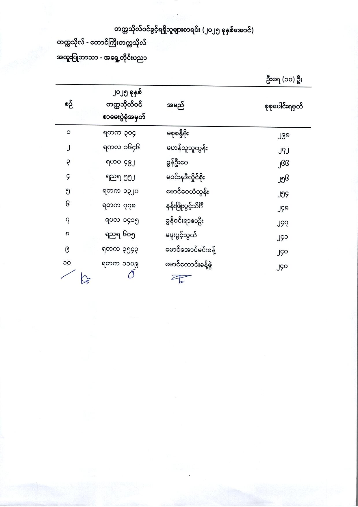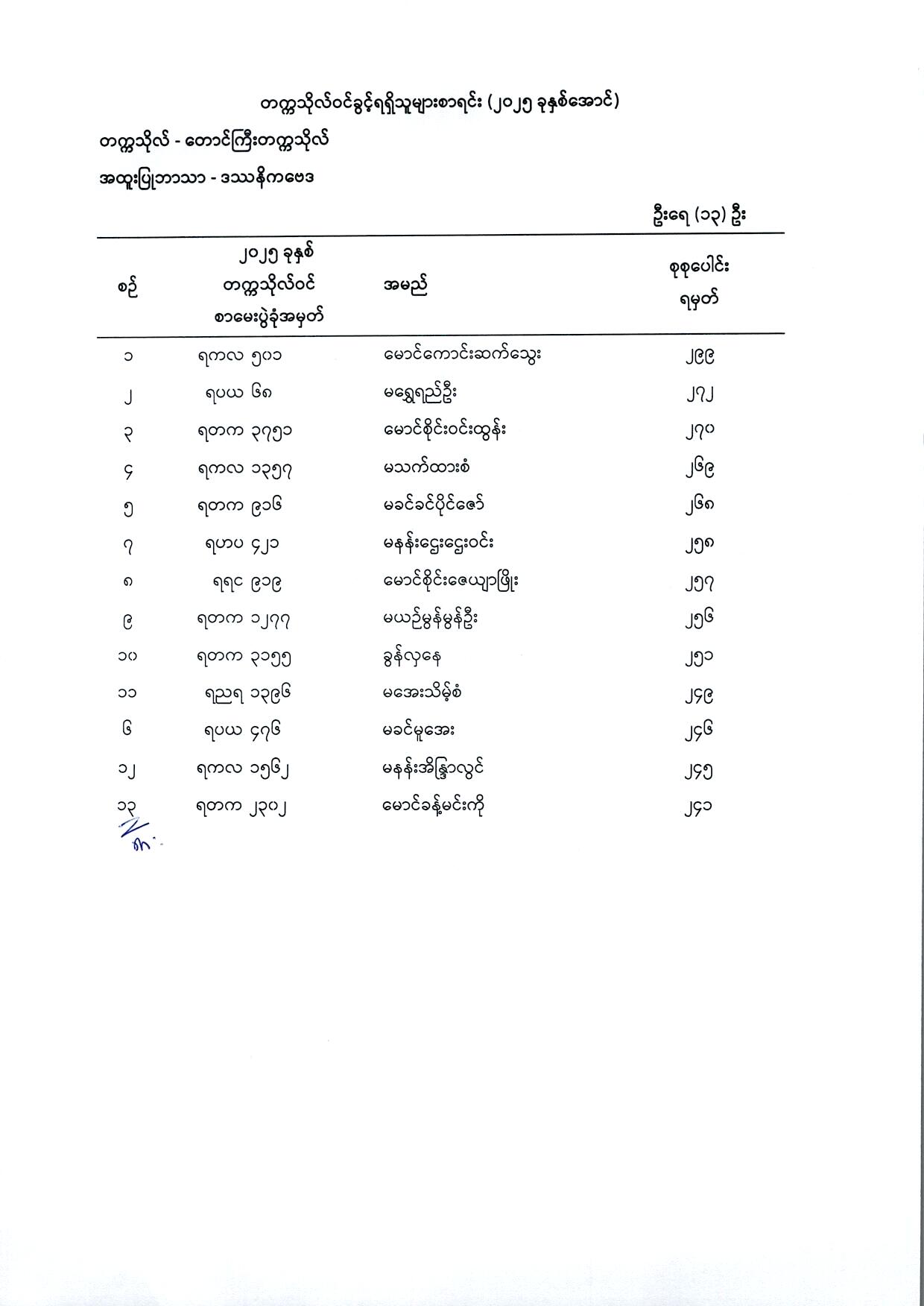 • ဆေးတက္ကသိုလ်များနှင့် သွားဘက်ဆိုင်ရာဆေးတက္ကသိုလ်များသို့ ဝင်ခွင့်လူတွေ့နှုတ်မေးစာမေးပွဲသို့ ဝင်ရောက်ဖြေဆိုခွင့်ရရှိသူများစာရင်း September 30, 2025