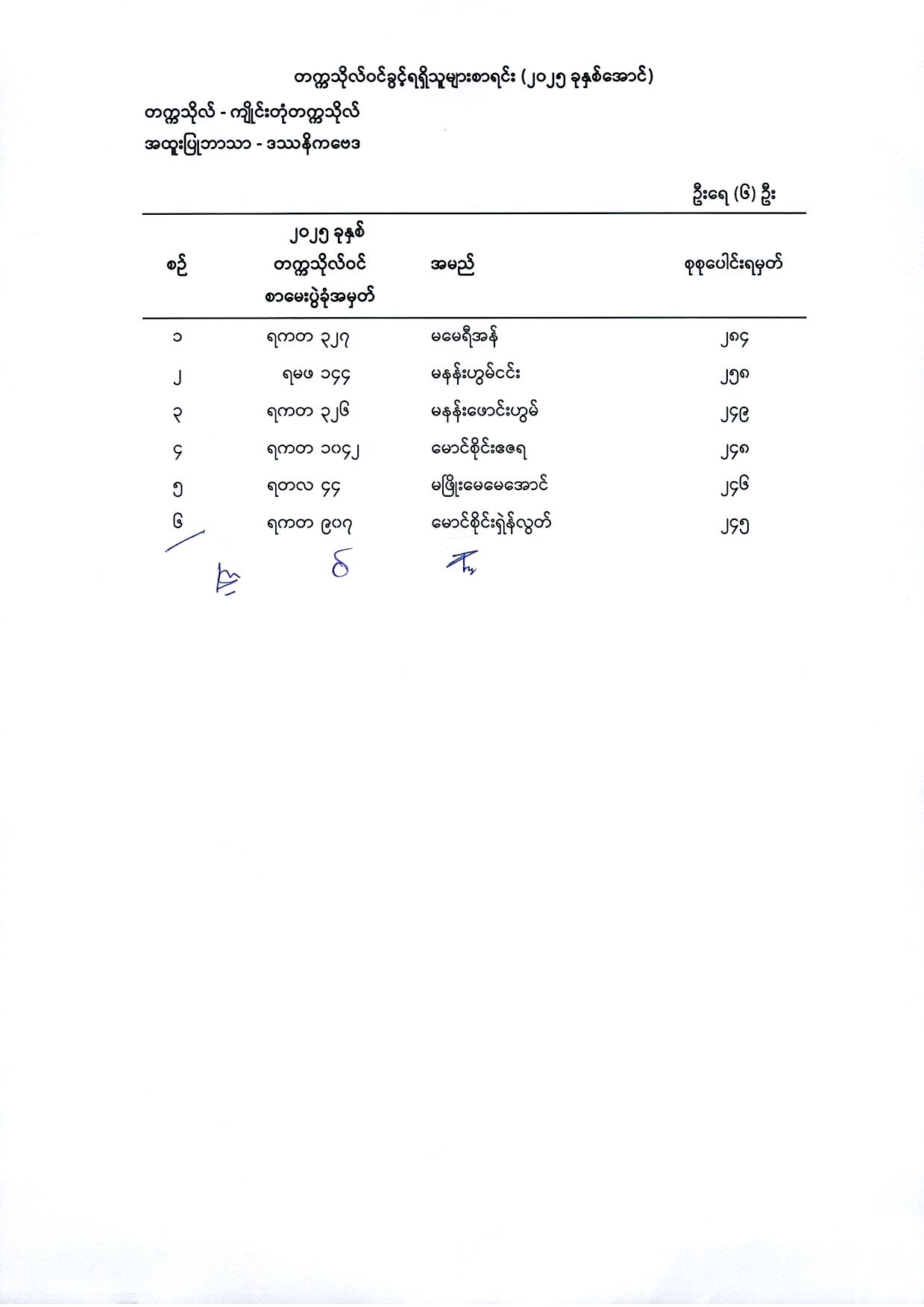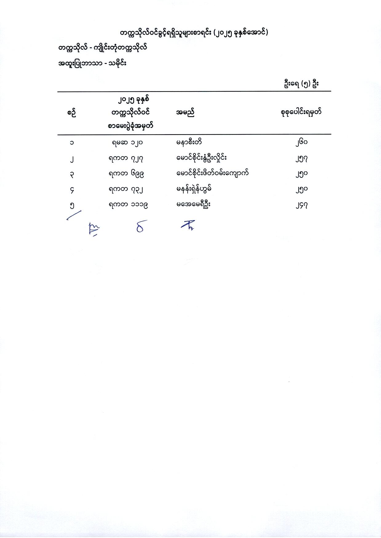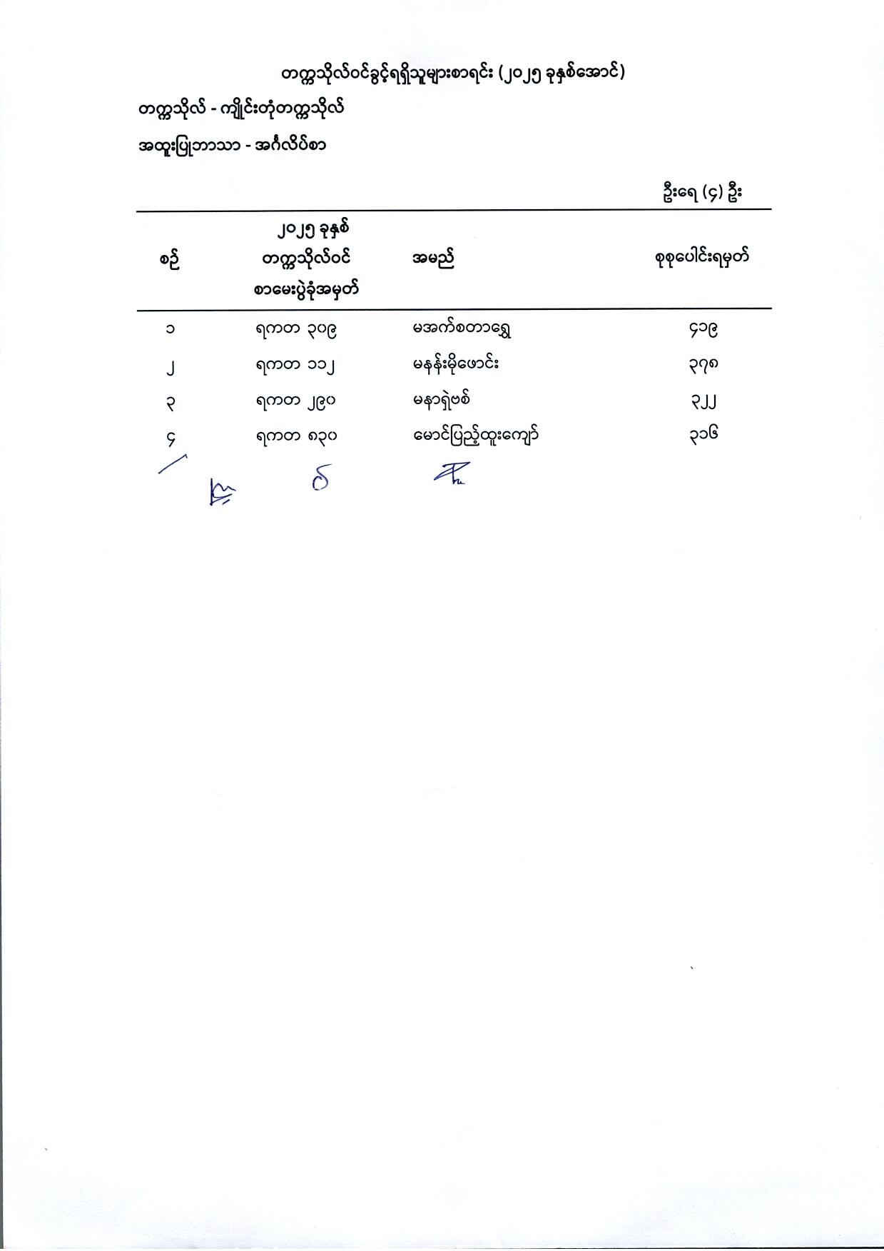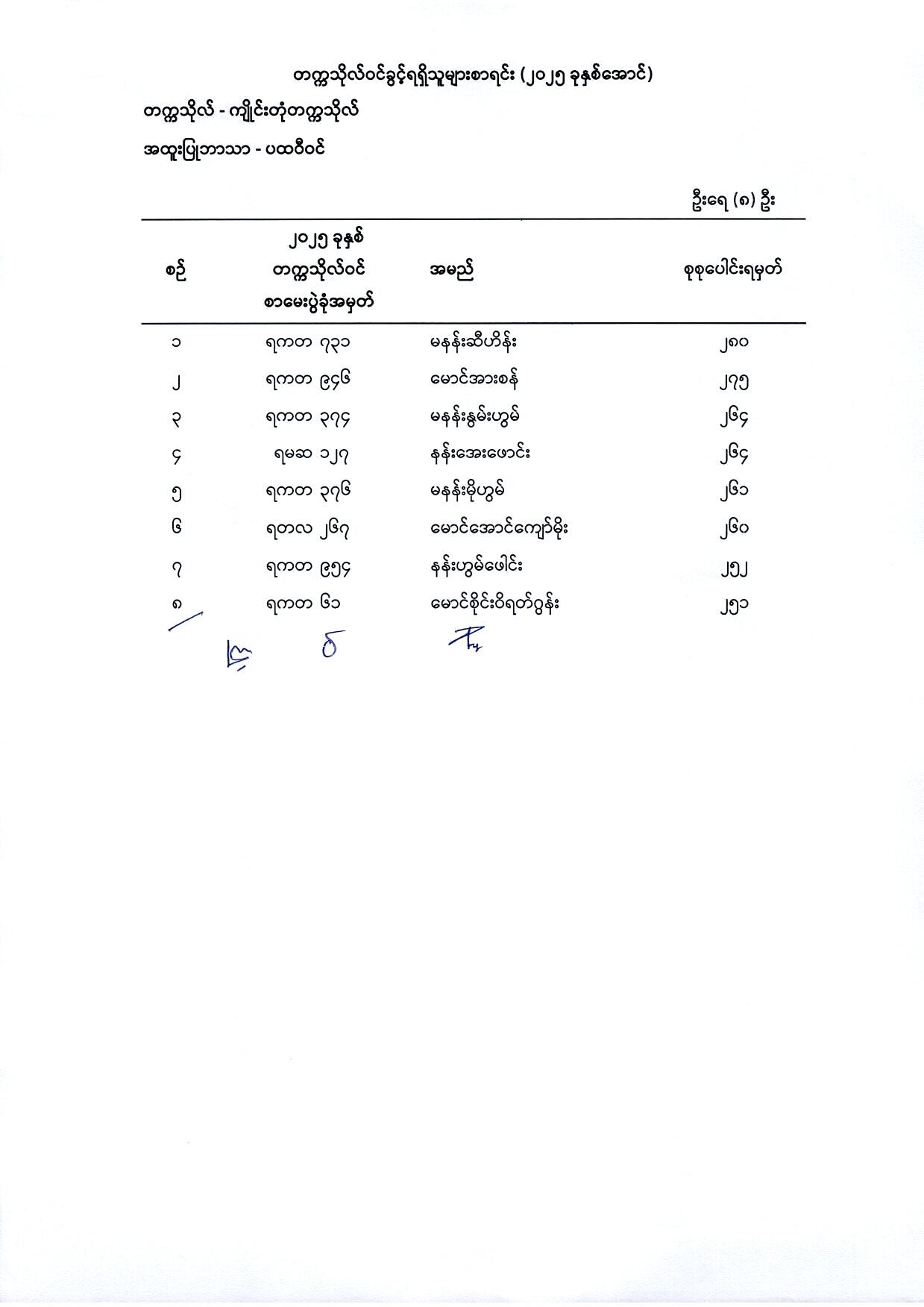 (၁) မြန်မာစာ