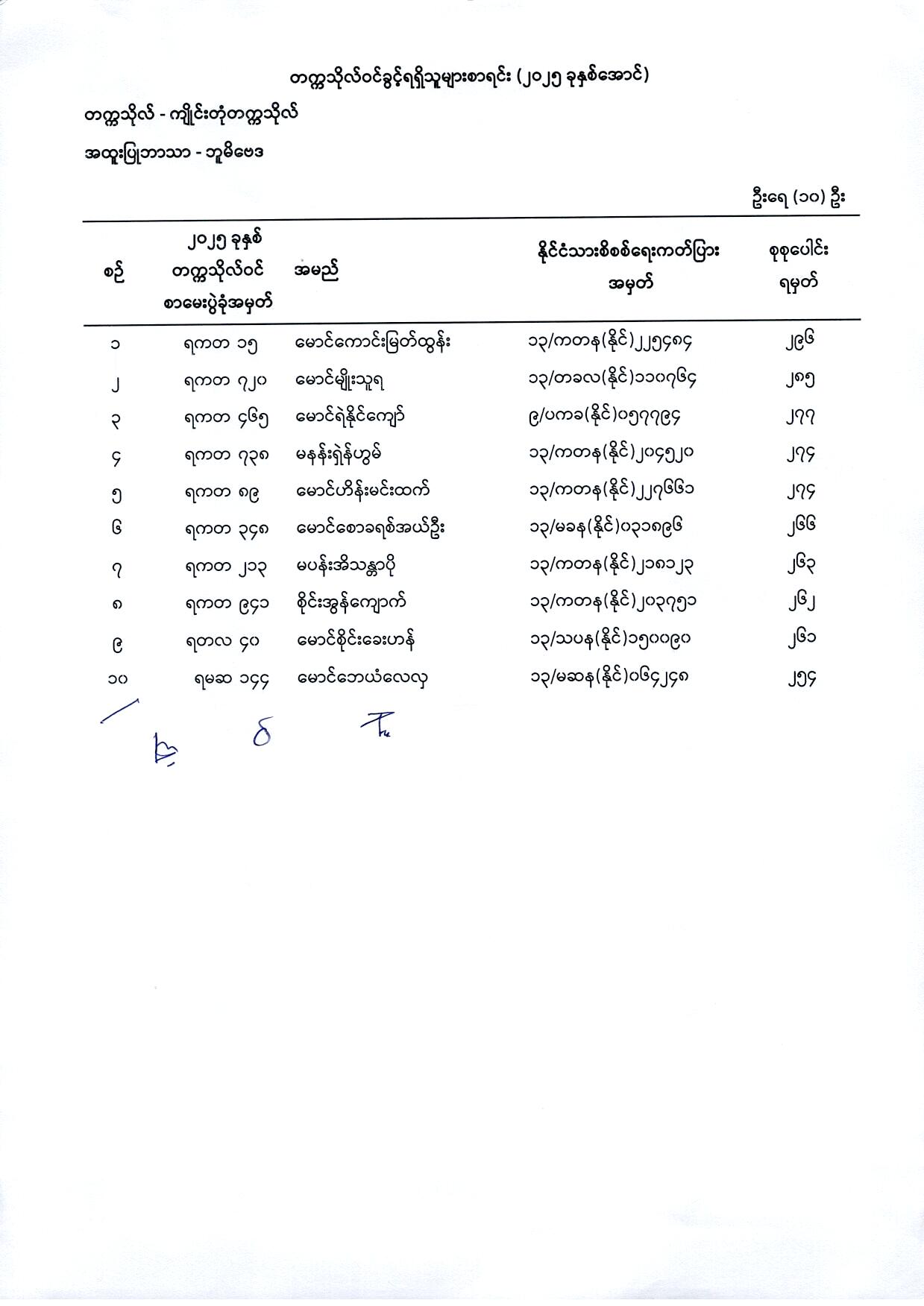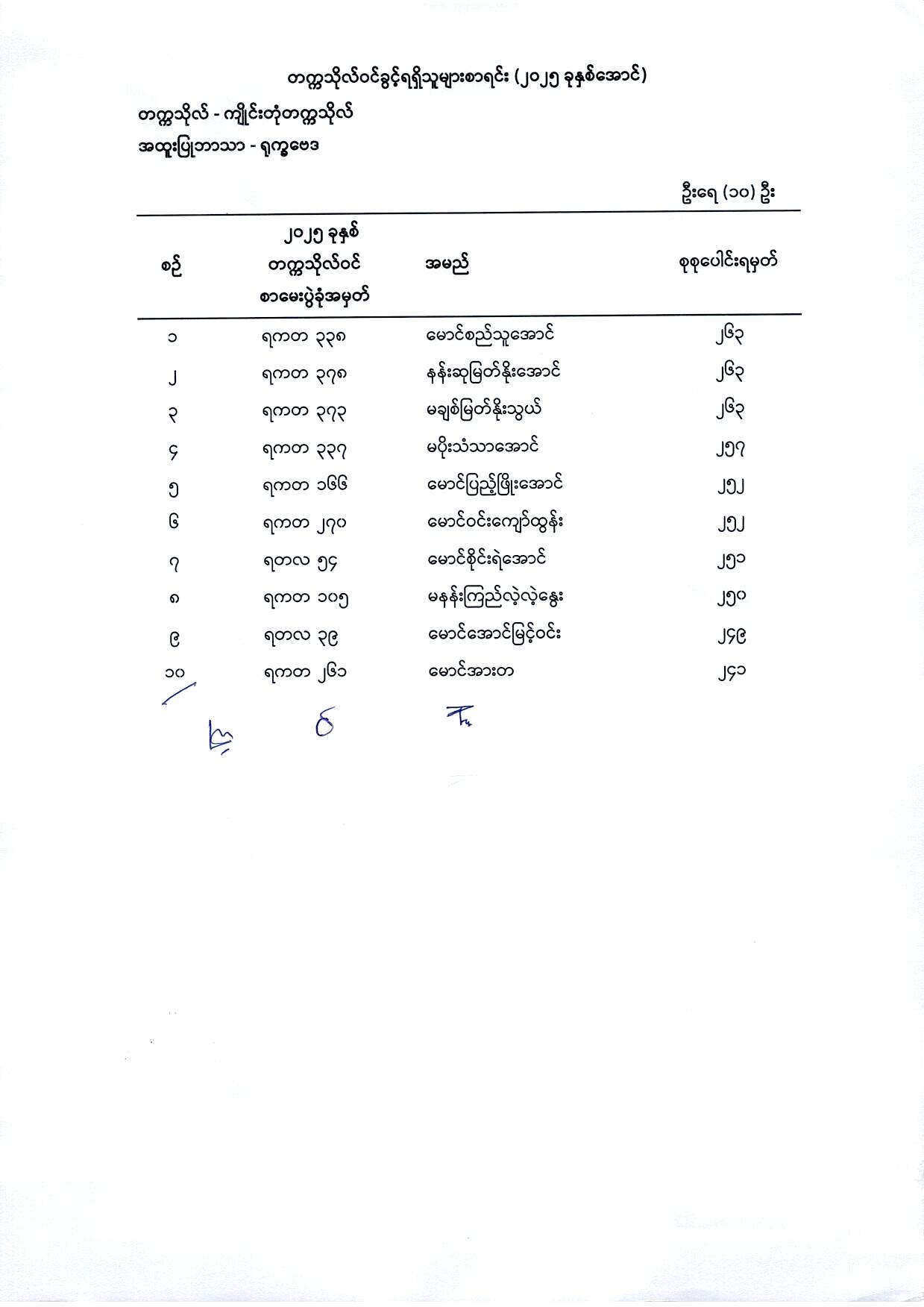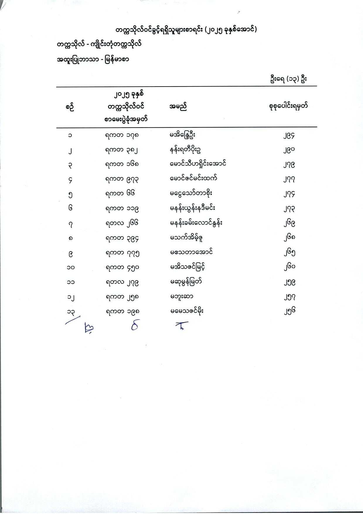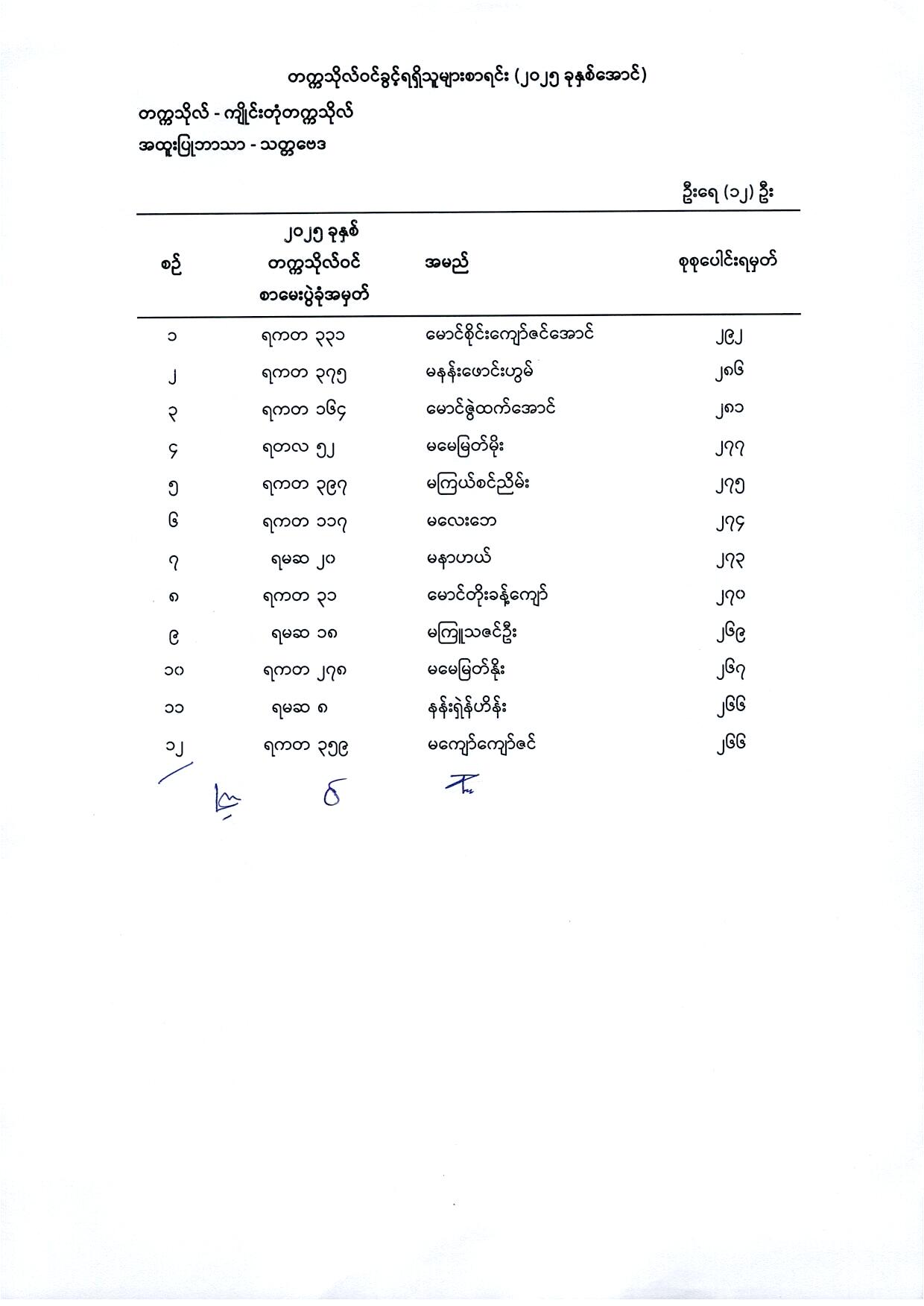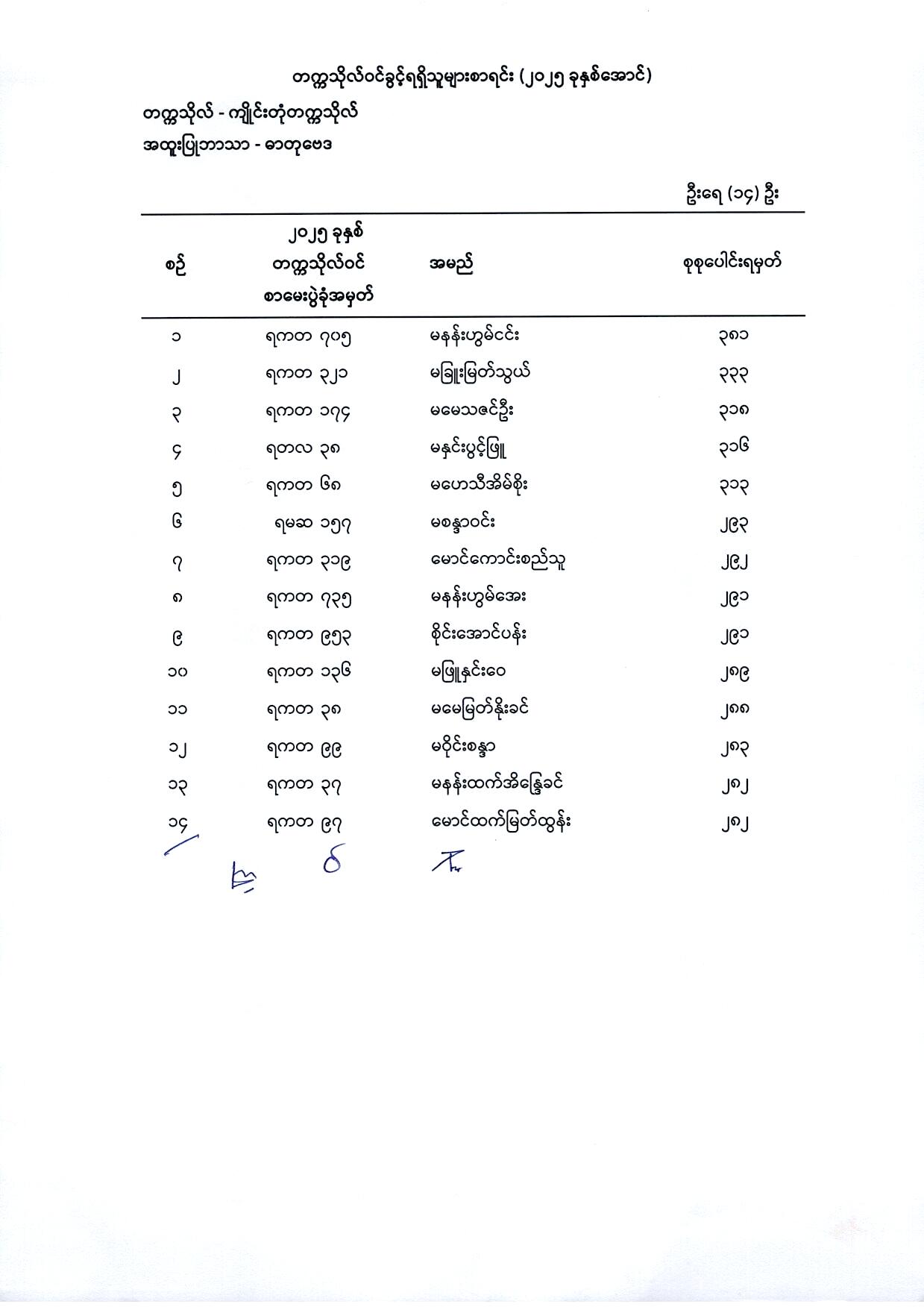 (၁) မြန်မာစာ